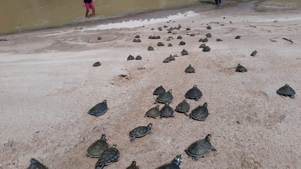 Última soltura de quelônios de 2019 devolve cerca de 2,5 mil filhotes de tartaruga e tracajás à natureza Projeto desenvolvido pela Sema, em conjunto com comunidades ribeirinhas, é importante para conservação de espécies 23 de dezembro de 2019