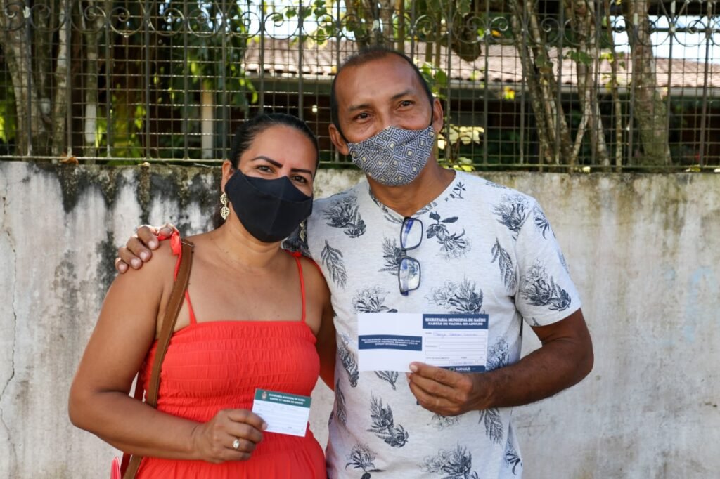 Juntos há 30 anos, casal toma primeira dose da vacina no Dia dos Namorados em Manaus 12 de junho de 2021