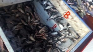 Os agentes iniciaram buscas e encontraram o pescado ilegal, avaliado em mais de R$ 9,3 mil. Conforme a polícia, o material estava escondido em sacos de fibra, sob outros tipos de pescado.