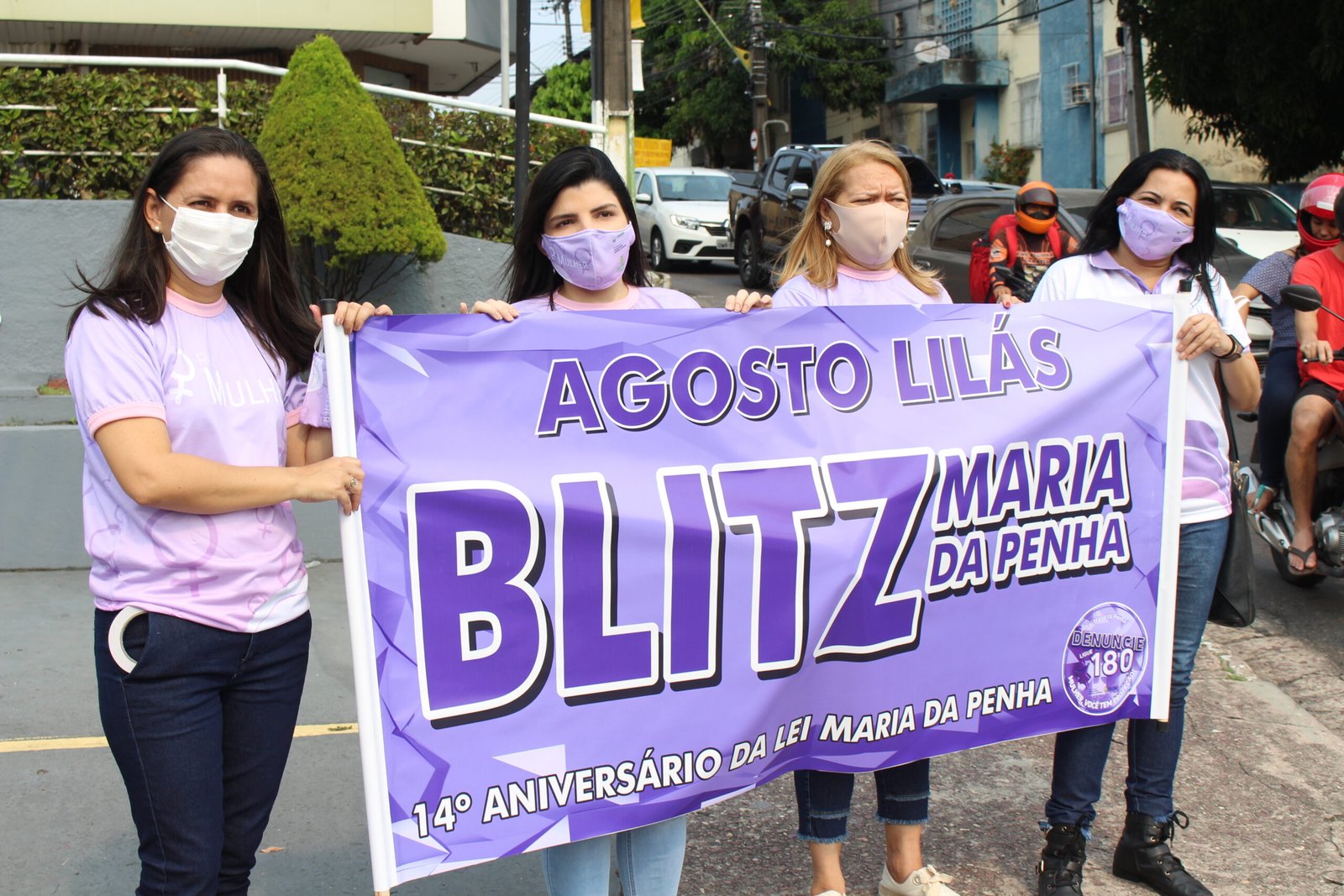 Pela tarde, as equipes se concentraram na Bola do Eldorado na segunda parte da “Blitz Maria da Penha”, no bairro Parque 10. No local elas fizeram abordagens e adesivaram veículos com o número “Ligue 180”. Com um alto-falante, o grupo também levou informações sobre a Lei Maria da Penha e a importância dela para as mulheres. A programação encerrou com a iluminação do Teatro Amazonas.