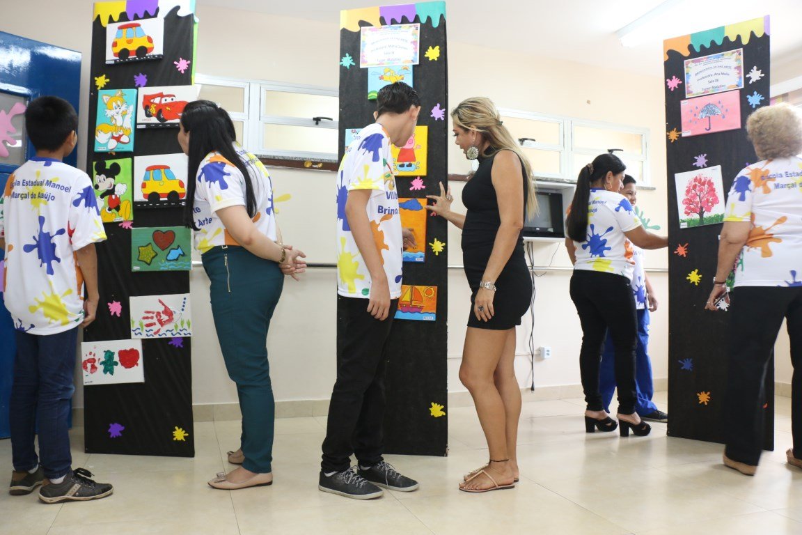 As pinturas feitas pelos alunos de educação especial da Escola Estadual Manoel Marçal foram destaque na exposição da 8ª Feira Literarte, realizada na unidade de ensino, na última sexta-feira (1º/11). Pais dos estudantes e profissionais da escola, situada no bairro Cachoeirinha, zona sul de Manaus, ficaram orgulhosos com o resultado exibido. As obras expostas puderam ser adquiridas, e o valor será usado na produção da festa de Natal de cada turma.