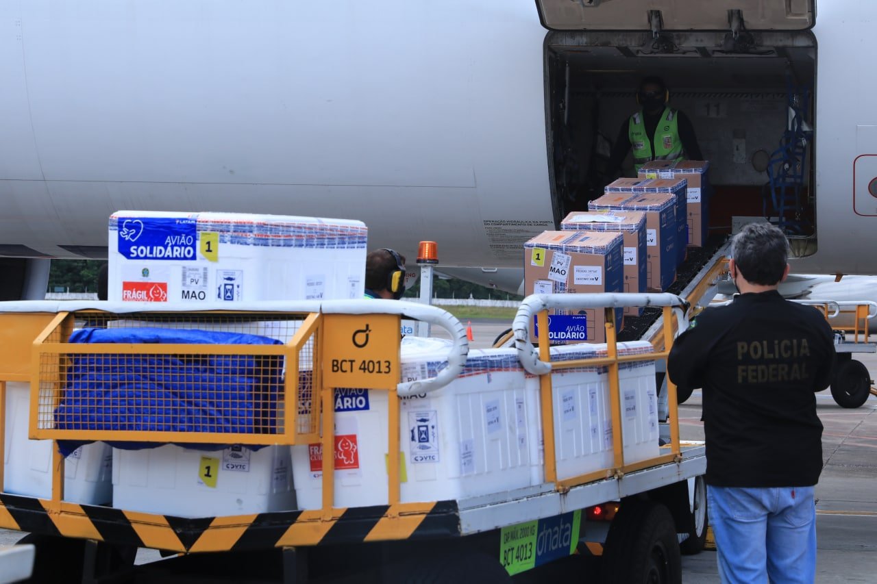 As vacinas foram transportadas no voo LA 3182, da companhia aérea LATAM. O avião com os imunizantes aterrissou por volta de 15h em Manaus. Após o desembarque, as doses da CoronaVac e da Janssen foram direcionadas à sede da FVS-AM, já as doses da Pfizer foram encaminhadas para a Fundação Hospitalar de Hematologia e Hemoterapia do Amazonas (Hemoam), ambos os transportes escoltados pela Polícia Federal.