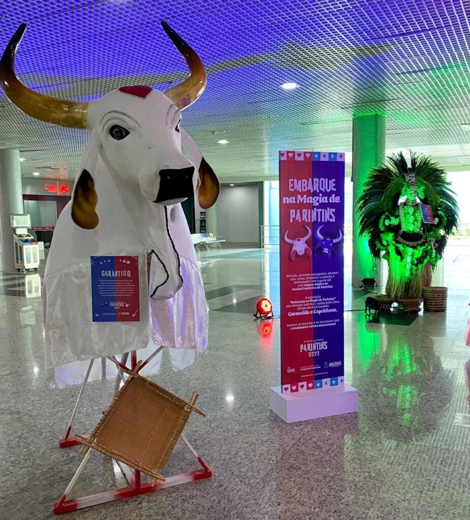 Expostas no saguão de desembarque do aeroporto, as peças têm o objetivo de promover o turismo e chamar a atenção dos passageiros que desembarcam na capital amazonense, muitos deles com destino a Parintins, onde acontecerá o 55º Festival Folclórico, de sexta-feira a domingo (24 a 26/06).
