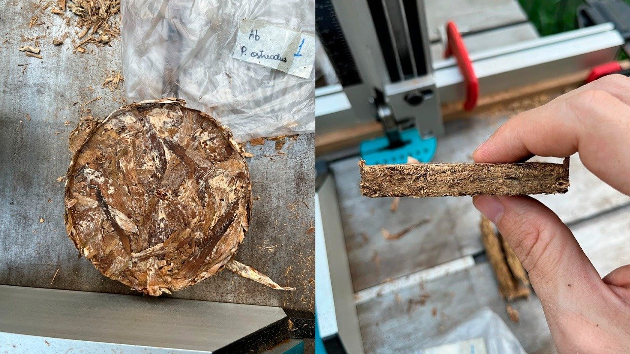 “Durante a produção dos biocompósitos, observamos que o substrato com 100% de resíduos fibrosos do abacaxi e inoculado com o fungo P. ostreatus, desenvolveu-se de forma satisfatória, sendo possível obter um biocompósito com boa agregação e mais homogêneo”, explicou Lais Brocco.