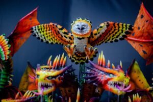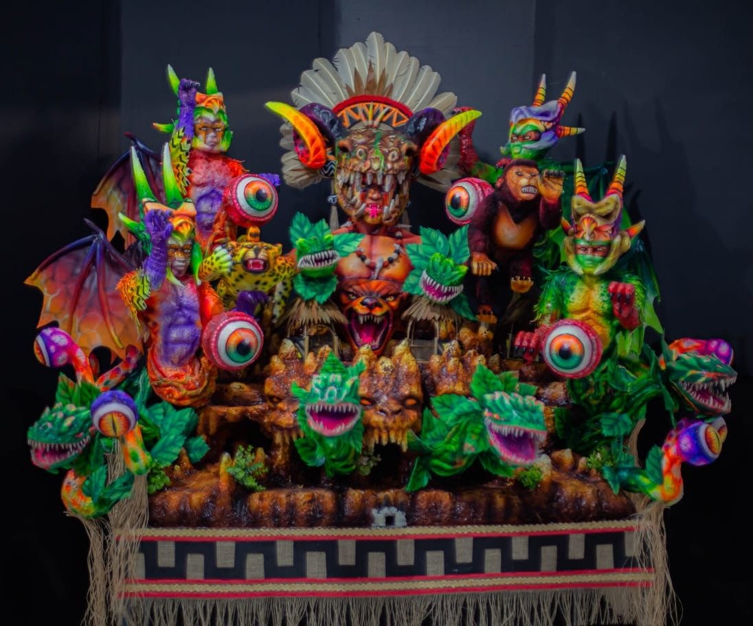 “Esta é especial para mim, foi a última que eu fiz, em 2019, e foi a mais desafiadora, porque continha 34 esculturas, quase o dobro das últimas nove alegorias que fiz, foi uma das maiores que já desfilou no festival, com 23 metros. A equipe não mediu esforços para concluí-la”, explicou Marialvo.
