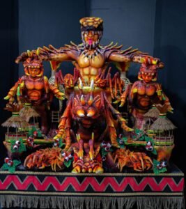 Entre as miniaturas que ficarão disponíveis ao público, Marialvo destaca a que representa o “Ritual Kawahiva”, que estreou no festival de 2019, uma das maiores alegorias que o artista já concebeu. O ritual é da cosmologia Kawahiwa-Parintintin, na qual índios caçadores da tribo são preparados, física e espiritualmente, pelo Pajé antes das caçadas na floresta. A alegoria apresentava as criaturas Serpentum – o homem-cobra, e o Acangaçu – a onça preta dente-de-sabre, entre outras.
