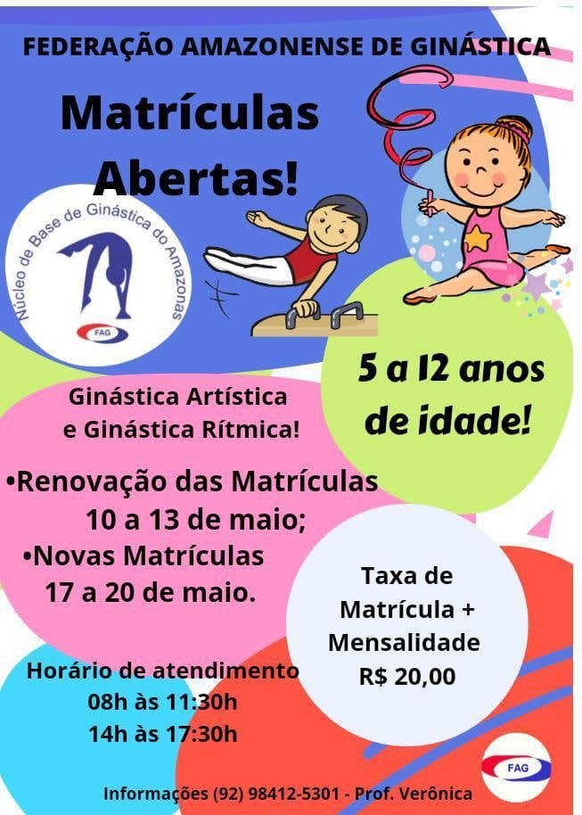 Faar divulga abertura de inscrições para turmas na Federação Amazonense de Ginástica 5 de maio de 2021
