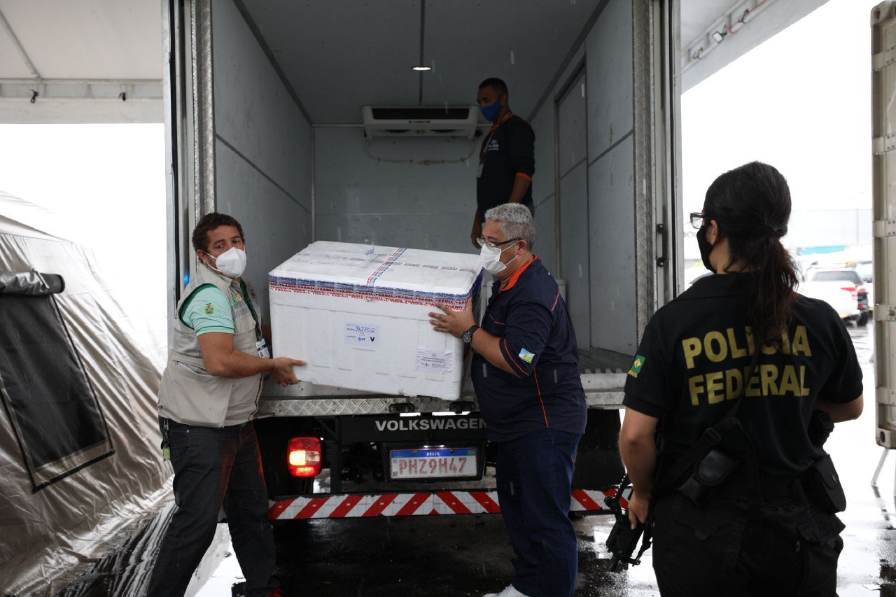 Distribuição –Até o momento o Amazonas recebeu 1.079.720 doses de vacina contra a Covid-19, destas, 1.091.950 doses entregues e 35.714 doses a serem entregues. Mais informações acesse https://bit.ly/3owHiPU.