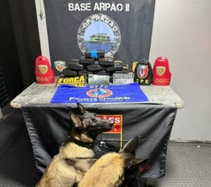 Durante os procedimentos no convés da embarcação, com o apoio dos cães policiais Athena e Arad, os policiais militares identificaram a presença de entorpecentes nas bagagens de um passageiro. Nas buscas, foram encontrados 15 tabletes de drogas, sendo 13 de maconha tipo skunk e dois de pasta-base de cocaína, totalizando cerca de 15 quilos.