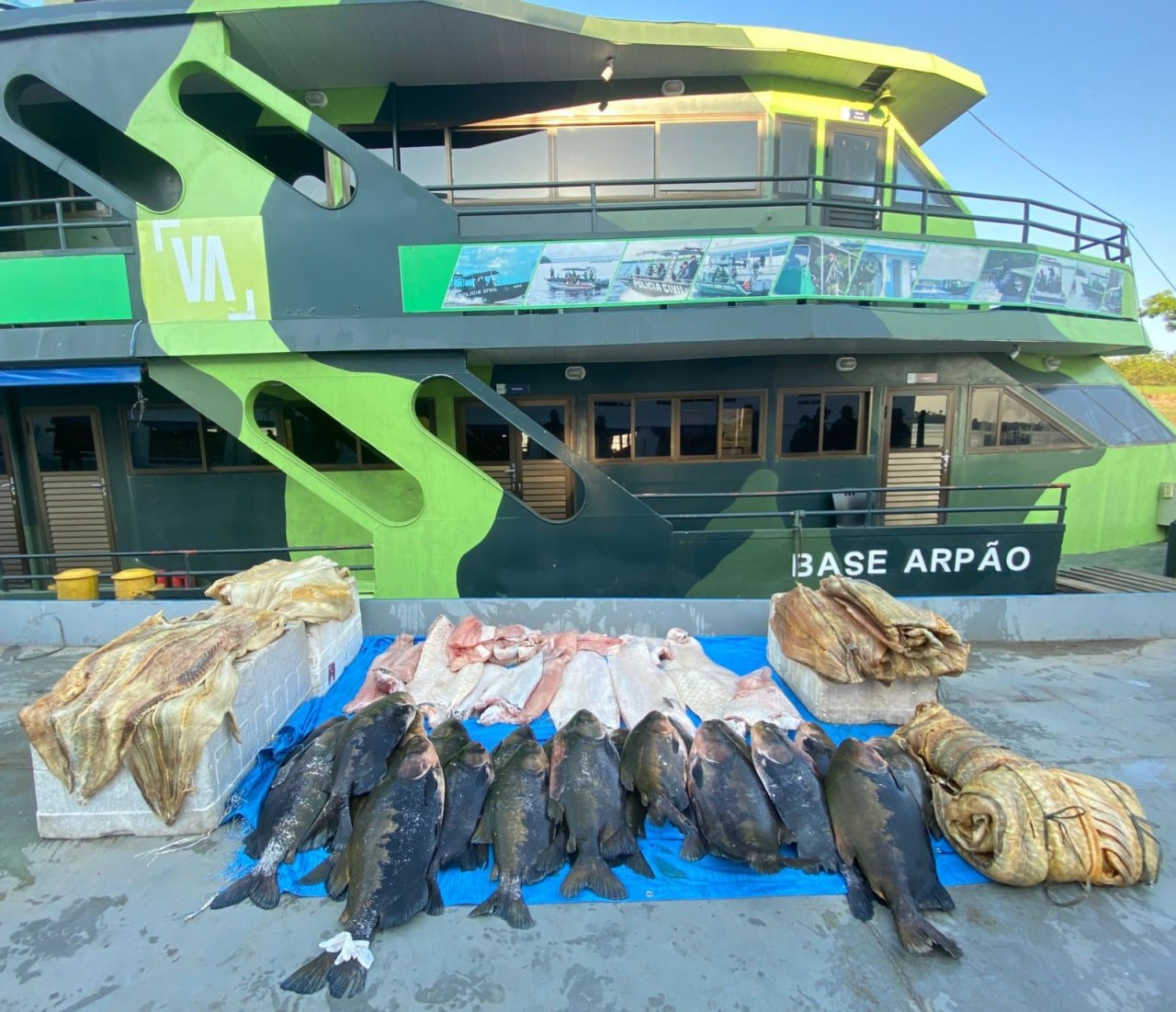 Policiais militares e civis da Base Fluvial Arpão apreenderam em uma embarcação, tipo ferry-boat, 721 quilos de pescado ilegal, entre pirarucu e tambaqui, no início da manhã desta terça-feira (14/09). A ação ocorreu nas proximidades do município de Coari (a 363 quilômetros de Manaus). Dois homens foram detidos por crime ambiental.