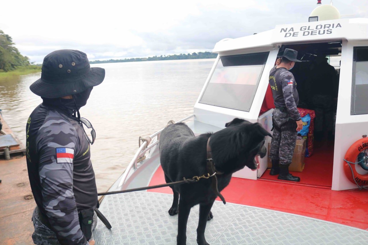 Precisos quando o assunto é farejar entorpecentes, os cães policiais são empregados em operações nas regiões de influência das fronteiras do Amazonas com objetivo de combater o tráfico de drogas e prender envolvidos nesse tipo de crime. Na base fluvial Arpão, localizada no rio Solimões, próximo ao município de Coari (a 363 quilômetros de Manaus), os cães especialistas em faros de narcóticos são essenciais durante as revistas em embarcações de médio e grande porte.