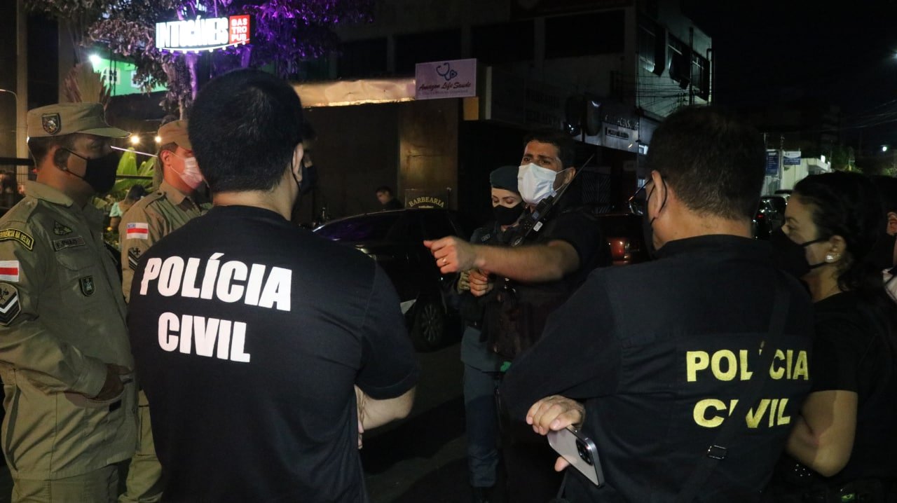 Na avenida Max Teixeira, no bairro Cidade Nova, zona norte, os agentes fecharam a festa clandestina chamada de baile do R7. Os responsáveis foram autuados por permitir mais de três músicos no palco, possuir pista de dança, gerar aglomeração e por funcionar como casa de show durante período de pandemia, o que não é permitido.