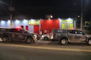 Festas clandestinas – Ao chegar na casa de show Via Sul Hall, no bairro Japiim, zona centro-sul, os policiais e fiscais flagraram grande aglomeração de pessoas com salão de dança, que não é permitido no decreto estadual que prevê as regras de prevenção a Covid-19. O evento era clandestino.