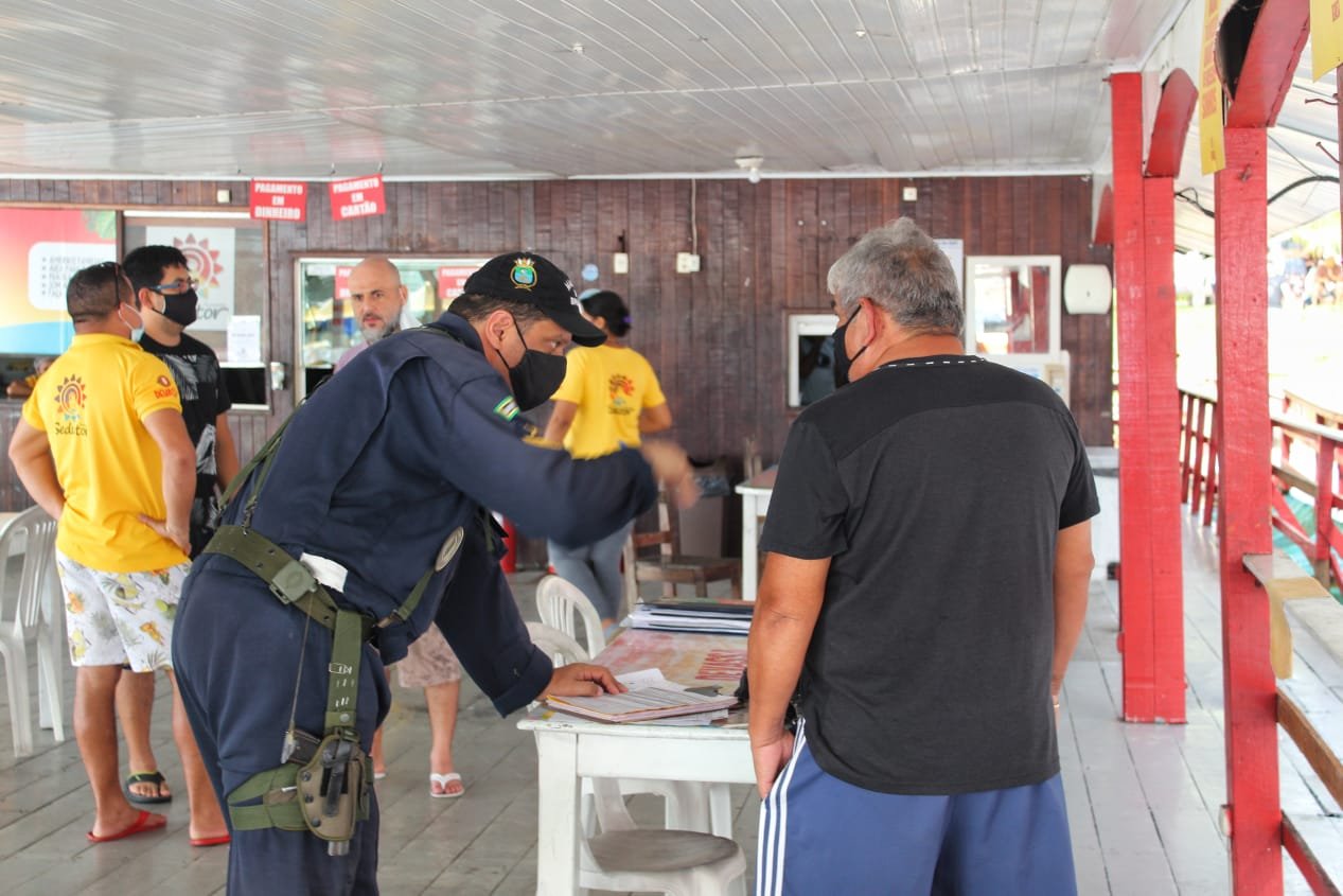 Os flutuantes vistoriados na tarde deste domingo foram Sun Paradise, Amazônia, Super Amazonas, Salomé e Sedutor. Nos cinco flutuantes não foram identificadas aglomerações e as medidas de prevenção contra a Covid-19 estavam sendo devidamente cumpridas. Os agentes realizaram apenas o procedimento de orientação.
