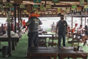 Mesmo com o domingo nublado, os agentes da Central Integrada de Fiscalização (CIF) efetuaram vistorias em cinco flutuantes na tarde deste domingo (18/04), em Manaus. O principal objetivo da CIF Fluvial é verificar se os locais estão cumprindo o decreto governamental e realizar as devidas orientações a proprietários e banhistas, além de autuações, nos casos onde há necessidade.