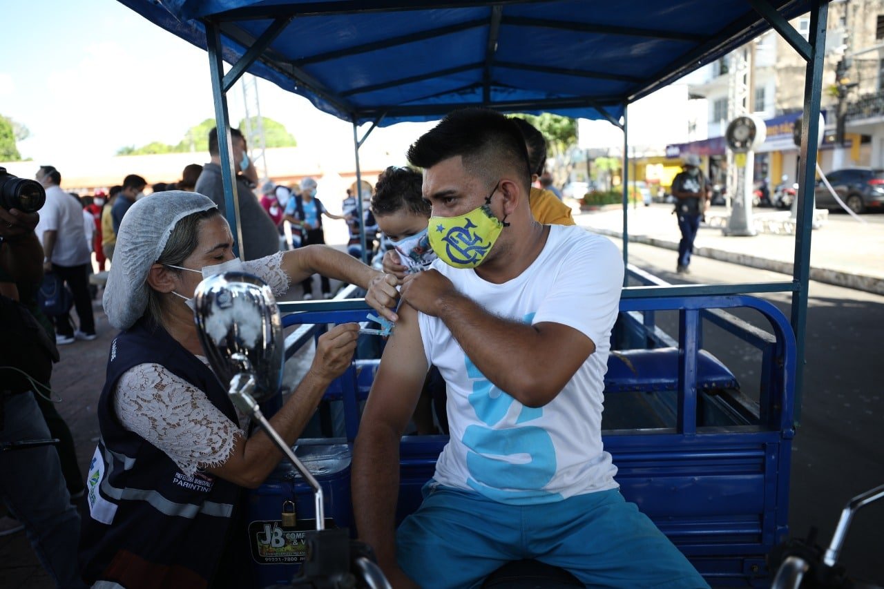 O grande mutirão de vacinação contra a Covid-19 realizado pelo Governo do Amazonas em Parintins, neste sábado (26/06), trouxe esperança de dias melhores, especialmente, para quem sonha em ver as ruas da cidade repletas de turistas e brincantes dos bumbás azul e vermelho, como o tricicleiro Leandro Oliveira, que esteve no posto de vacinação na Catedral Nossa Senhora do Carmo, acompanhado da esposa e do filho.