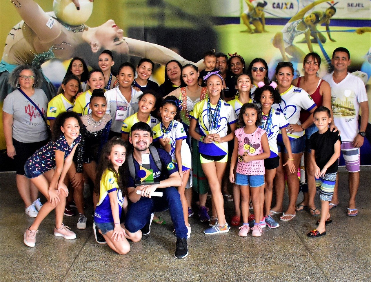 Técnica da Associação Atlética Banco do Brasil (AABB-RR), Soraya Souza festejou em dobro com pais e atletas. Além da classificação de ginastas para a etapa nacional, o clube roraimense ainda faturou o troféu de campeão geral do Torneio Regional, somando um total de 103 pontos.