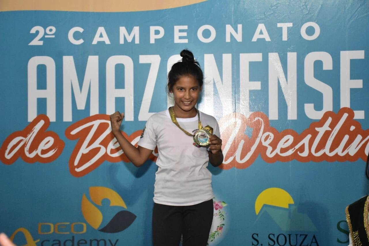 Família de campeões- Com apenas oito anos de idade, Anderlan Gemerson faturou o ouro na categoria Infantil e afirmou que treinou bastante para a sua primeira disputa. “Foi minha primeira vez competindo e gostei muito de lutar na areia. Também faço jiu-jítsu com meu irmão e minha mãe, e treinamos juntos para fazer bonito no campeonato”, contou.