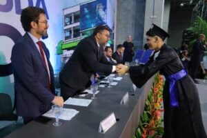 Ao todo, 557 alunos participaram da formatura. Desse total, 319 estudantes são oriundos da rede estadual de ensino, beneficiados pela parceria firmada em 2023, que ampliou o acesso ao ensino técnico integrado ao ensino médio em regime de tempo integral.