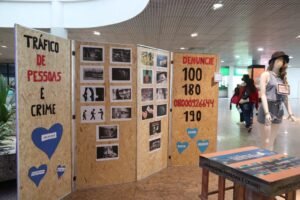 A Gerência de Migração, Refúgio, Enfrentamento ao Tráfico de Pessoas e Trabalho Escravo (GMIG), vinculada à Secretaria Executiva de Direitos Humanos (SEDH) da Sejusc, realizou a conscientização do público com a distribuição de panfletos, além de abordar sobre a temática por meio de uma mostra com manequins e frases que remetem ao tráfico de pessoas.