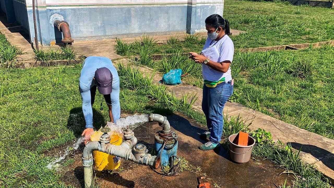 A equipe técnica realiza os trabalhos de reconhecimento e de análise da área operacional do atual sistema, além de estudos técnicos e análise físico-química e microbiológica da água do município e, também, das estruturas dos poços de captação e reservatórios.