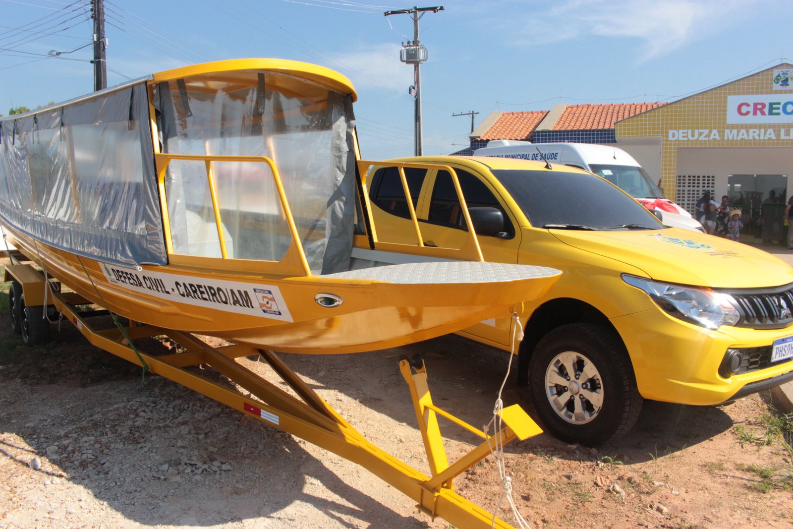 O material foi adquirido através de convênio firmado entre o município do Careiro e o Governo do Estado. Foram entregues uma viatura tipo picape, um caminhão-pipa e uma lancha. Esses veículos irão auxiliar os trabalhos realizados pela Defesa Civil do Careiro Castanho nas comunidades de difícil acesso, além de contribuir para o fortalecimento das ações preventivas e de resposta na redução de desastres naturais ou causados pelo homem.