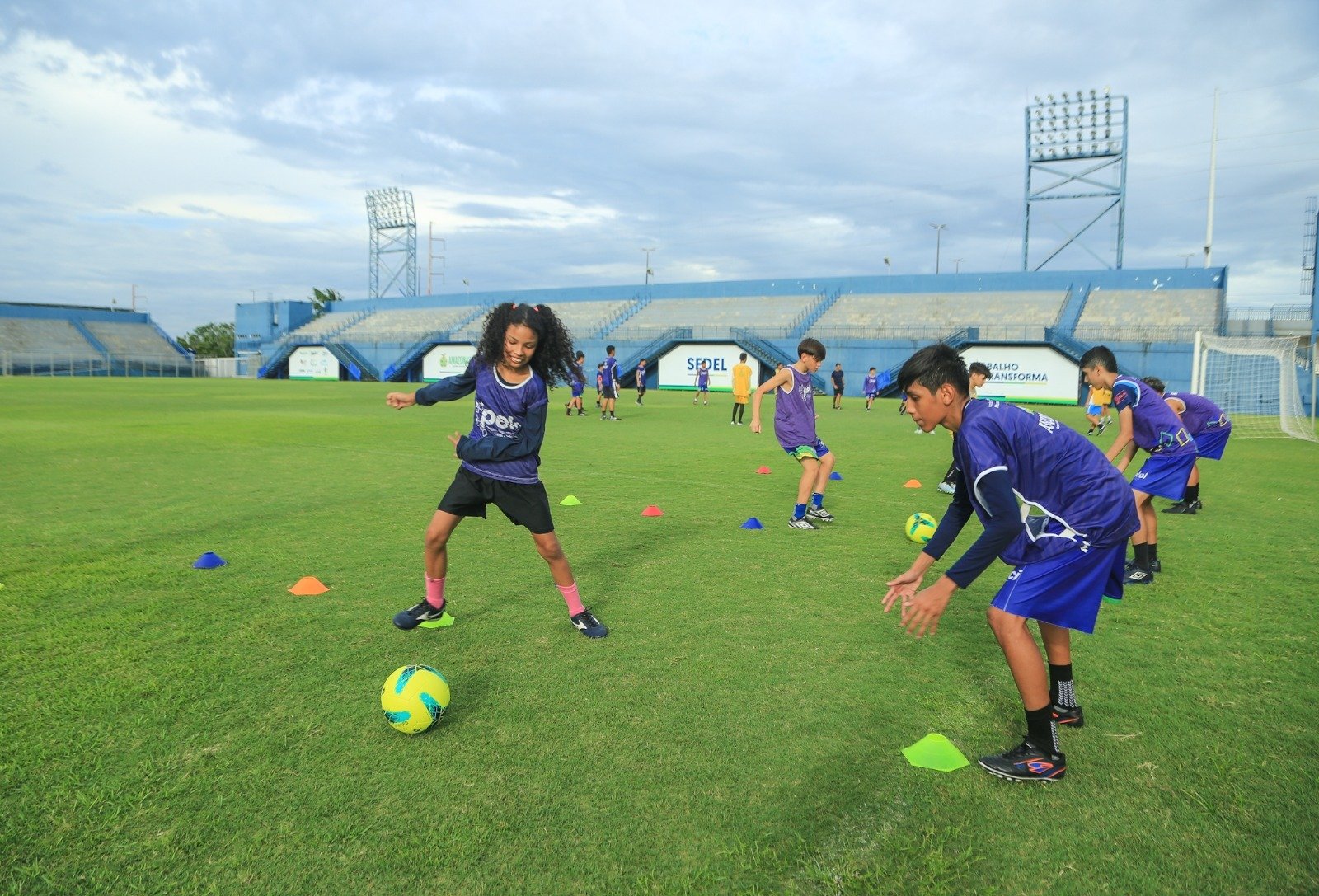 Três vezes na semana, com uma hora de treino, a atleta mirim se destaca pela melhora da lateralidade, coordenação motora e foco no aprendizado. “Eu gosto muito de estar aqui no Pelci, de treinar futebol e meu maior sonho é jogar na Arena da Amazonia”, comemorou Maria Vitória.
