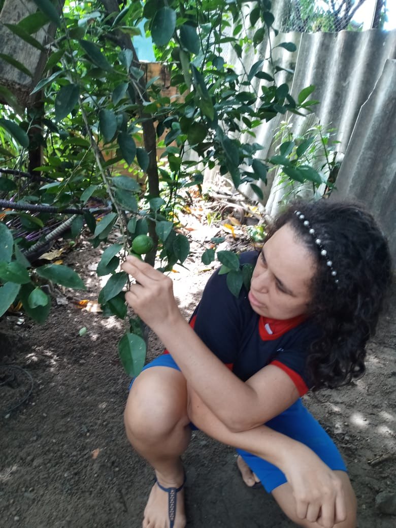 “Tenho muitas plantas aqui no quintal e todo dia ela vai lá regar, fica cuidando comigo e com o pai dela. Ela gosta muito de colher cebolinha e chicória da horta, também gosta de tomar chá. A gente faz exercícios, caminha no quintal. A professora manda os vídeos, a gente vai seguindo como pode. A Niedja gosta muito de cuidar das plantinhas dela. Os cactos e as suculentas são os que ela mais gosta”, entrega a mãe.
