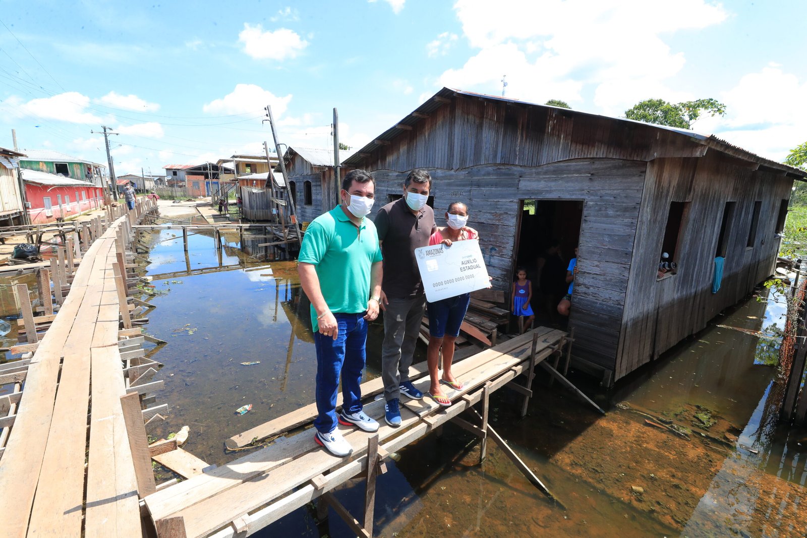 Wilson Lima também visitou famílias que tiveram suas casas atingidas pelas águas durante a cheia dos rios este ano. O governador entregou pessoalmente cartões do Auxílio Estadual Enchente. Em Caapiranga, já foram entregues 2.040 cartões, que disponibilizam R$ 300 para aquisição de alimentos e itens necessários para enfrentar a cheia dos rios.