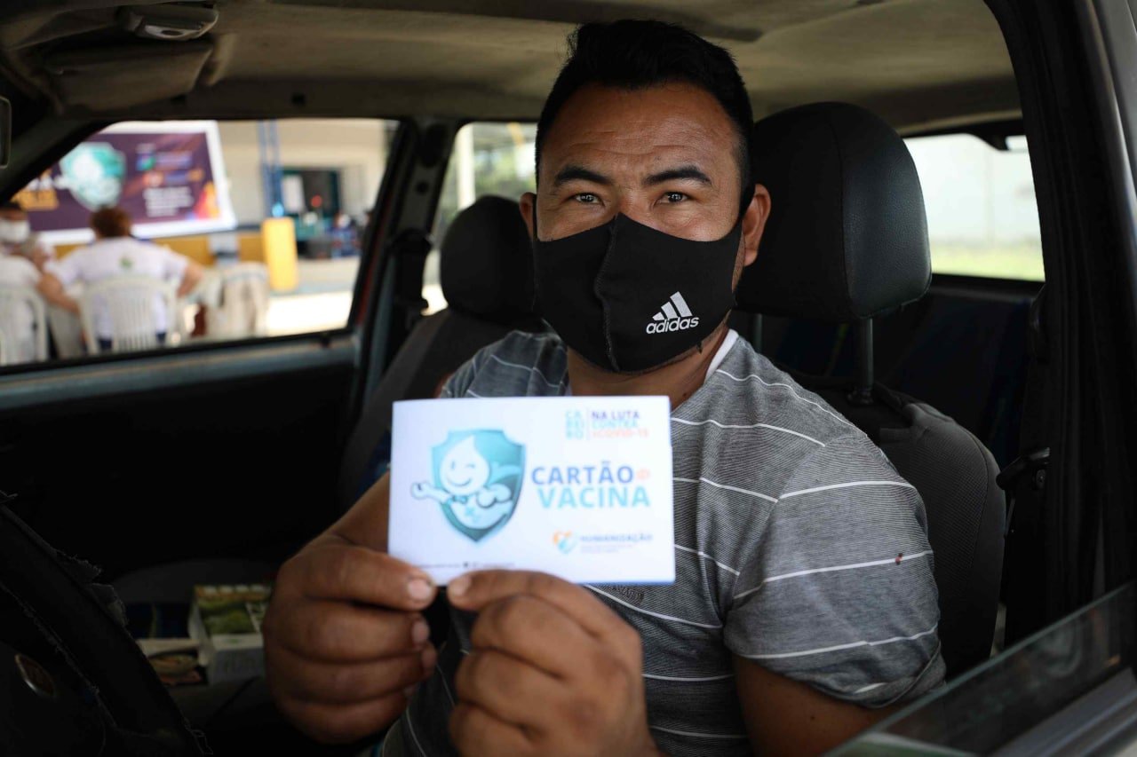 Já o radialista Lourenço Almeida também revelou ter aderido ao drive-thru pela praticidade e mais agilidade na fila. No banco de motorista, ele celebra o recebimento da segunda dose do imunizante e diz estar agradecido pela iniciativa do Governo do Amazonas em olhar para a vacinação no interior.