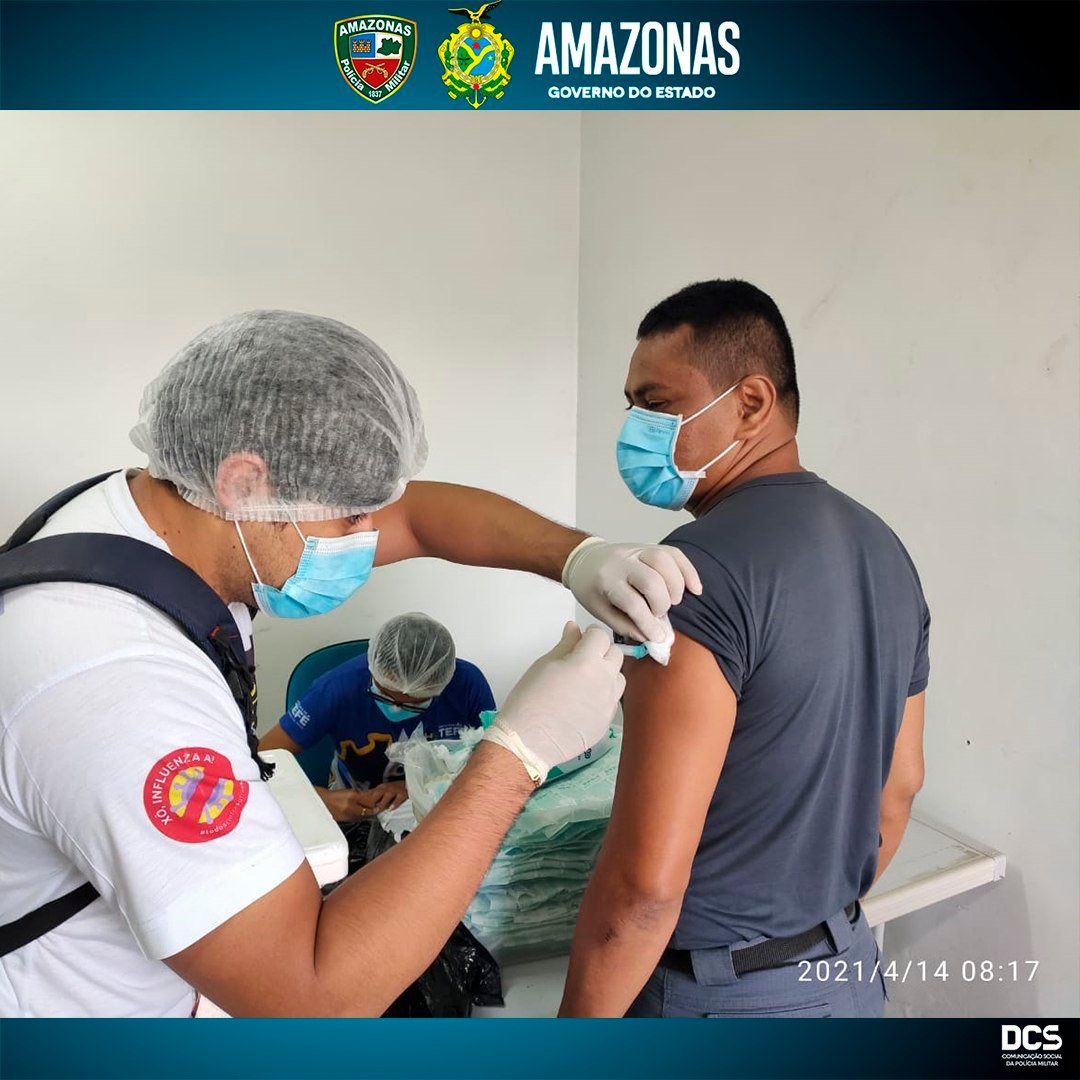 Policiais Militares do 3° Batalhão de Polícia Militar (3°BPM), na quarta-feira (14/04), receberam a 1ª dose da vacina contra a Covid-19. As doses foram aplicadas em 100 policiais, na sede do Batalhão, por meio da Secretaria Municipal de Saúde, cumprindo o Plano Municipal de Imunização de Tefé (distante 523 quilômetros de Manaus).