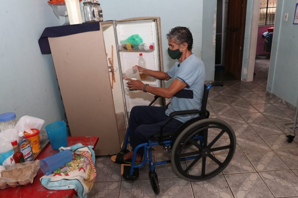 Emanoel de Oliveira, de 64 anos, teve uma das pernas amputadas por agravamento do problema de diabetes. Ele recebeu duas cadeiras de rodas do Governo, uma de passeio e outra para o banho.