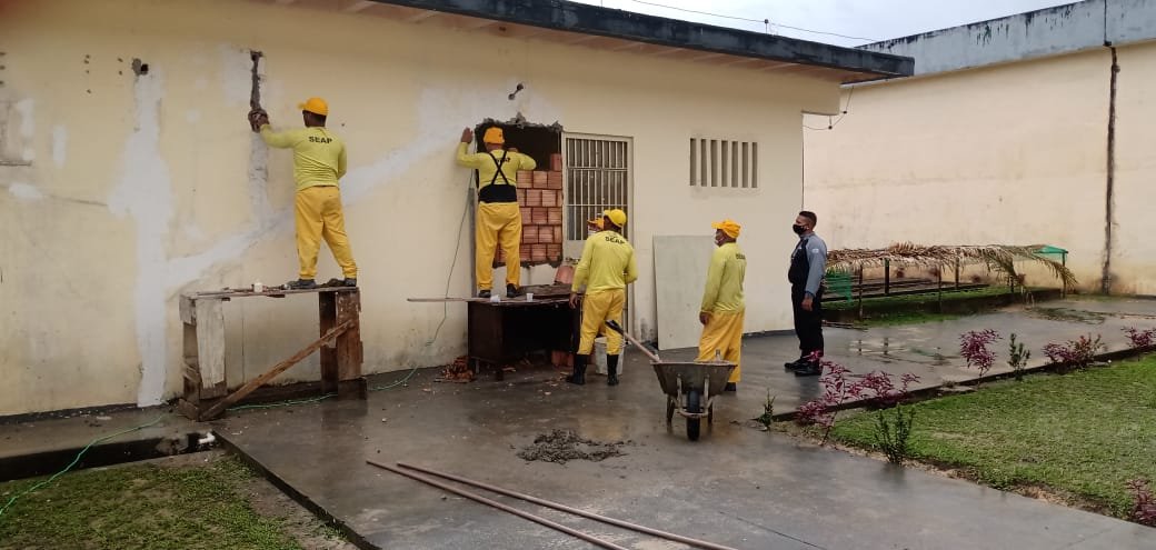 Internos do programa de ressocialização implantado pela Secretaria de Estado de Administração Penitenciária (Seap), “Trabalhando a Liberdade”, atuam na reforma de mais um estabelecimento penitenciário. Dessa vez, 10 reeducandos do Centro de Detenção Provisória Masculino 1 (CDPM 1), no km 8 da BR-174 (Manaus-Boa Vista), executam reparos na Enfermaria Psiquiátrica do sistema prisional, anexa ao local.