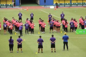 Para o treino realizado na Arena da Amazônia, foram convidadas alunas que apreciam o esporte e que estavam vacinadas contra a Covid-19, oriundas de dez escolas de Manaus.