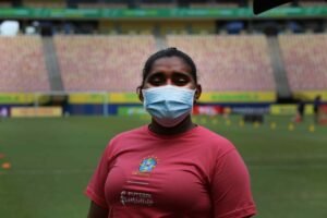 Flaviane de Souza, também do Ceti Gilberto Mestrinho, estava emocionada por jogar no gramado que foi palco de partidas da Copa do Mundo e outros grandes campeonatos.