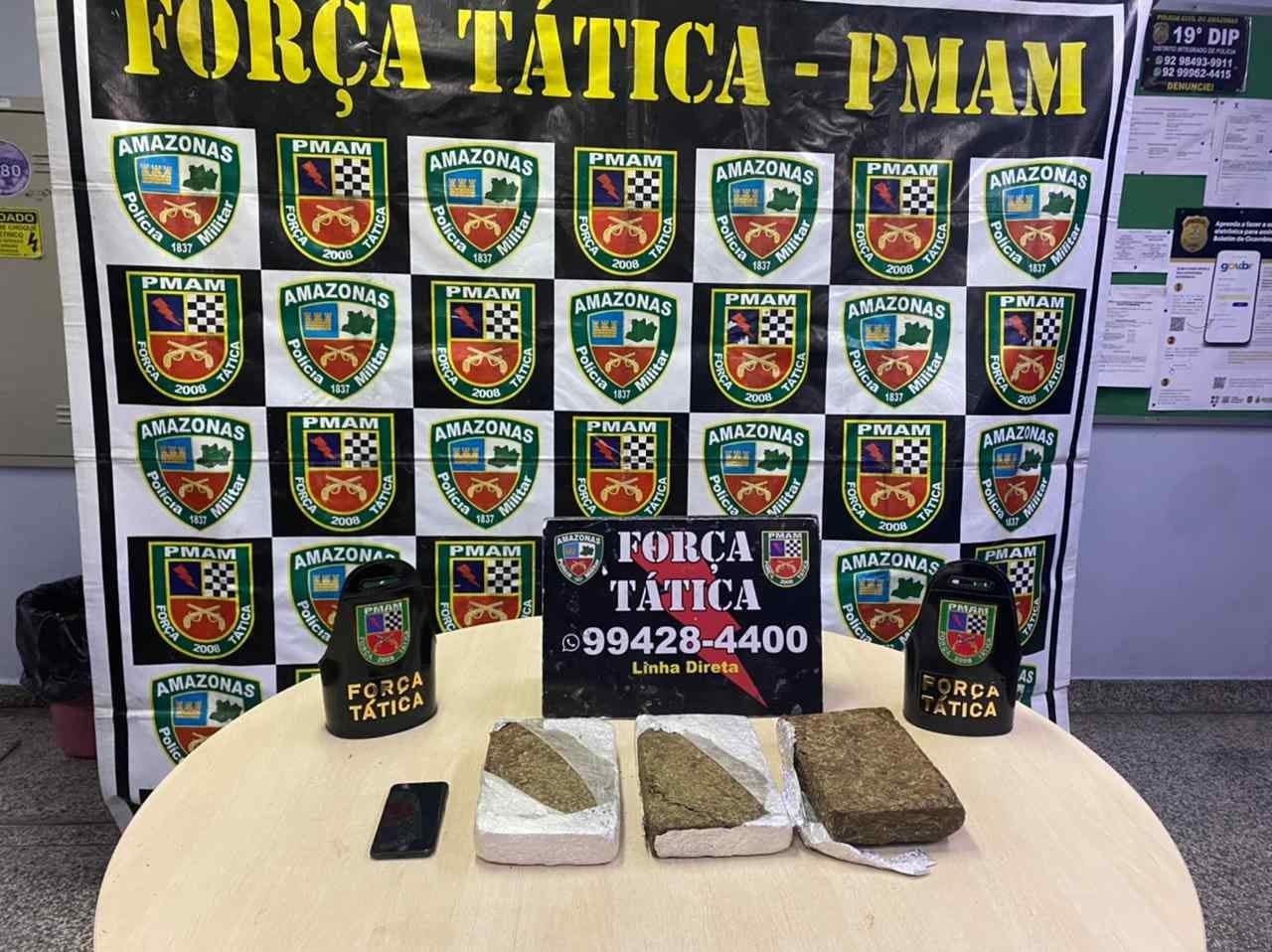 Em uma das ocorrências, na zona centro-oeste, por volta das 2h40 de hoje (30/07), uma equipe Tática recebeu denúncia durante o patrulhamento, de que um indivíduo estaria na rua 8, do bairro Alvorada esperando por uma entrega de drogas. A equipe se deslocou até o endereço denunciado, onde localizou um jovem de 19 anos com as características repassadas, que ainda tentou fugir ao avistar a viatura, sem sucesso. Na abordagem, dentro de uma bolsa que ele carregava, os policiais encontraram 3 quilos de maconha tipo “skunk”. Ele foi conduzido, com o material ilícito e um aparelho celular apreendido, ao 19º Distrito Integrado de Polícia (DIP) para providências legais.