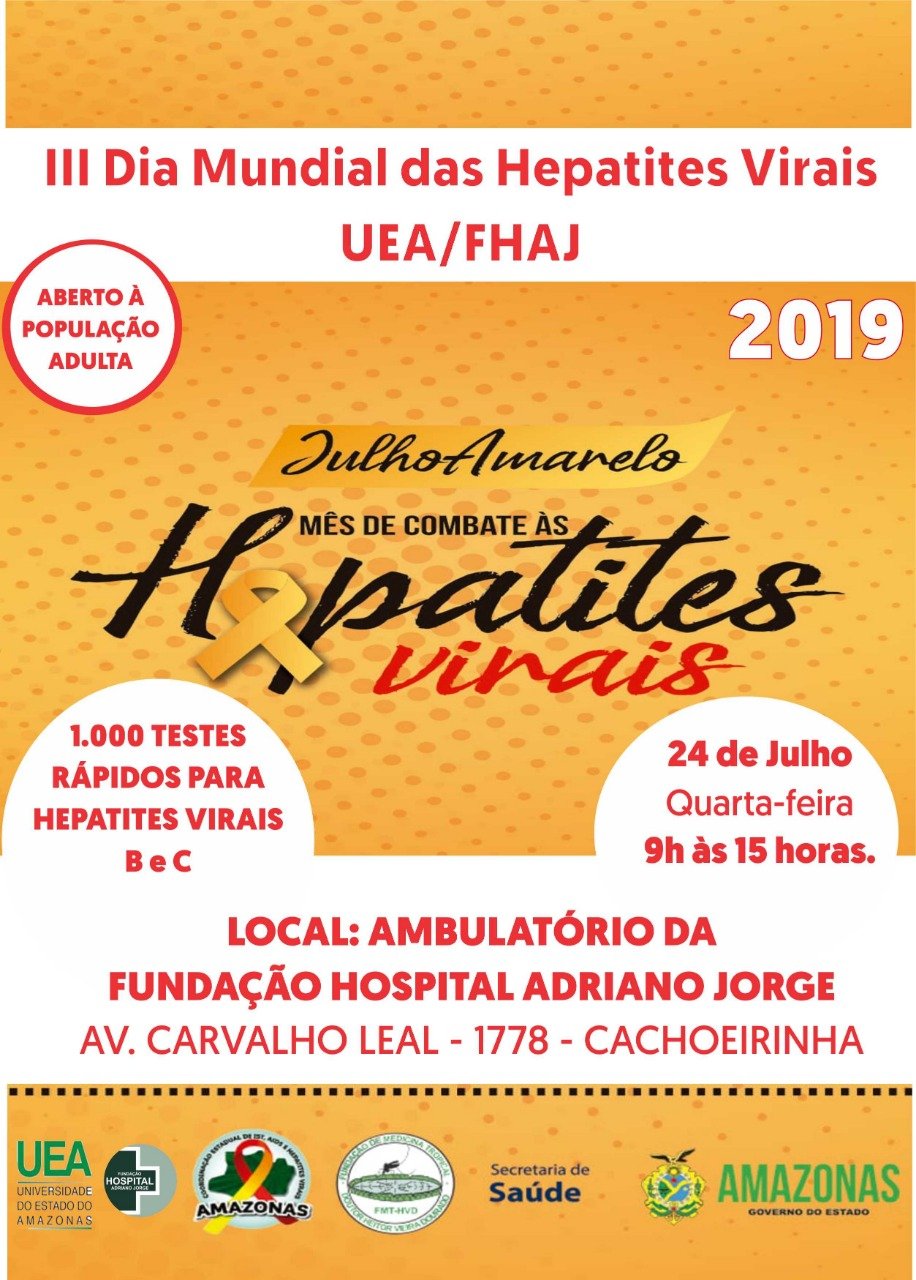 A Fundação Hospital Adriano Jorge (FHAJ), unidade vinculada à Secretaria de Saúde (Susam) do Governo do Amazonas, participa, na próxima quarta-feira (24/07), do Dia Mundial de Combate às Hepatites Virais, com a oferta de 1.000 testes rápidos para hepatites B e C.