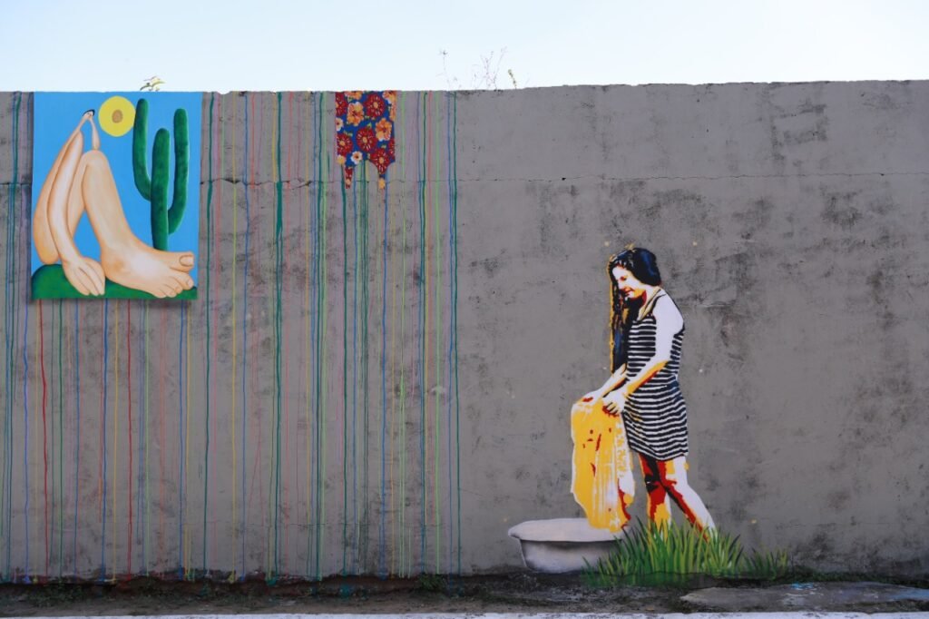 A obra “Entre a biografia e a arte”, do artista visual Josinaldo Mattos, traz um misto de vivências pessoais com o imáginário do caboclo parintinense. As pinturas permitem uma interação com quem passa pelo muro.