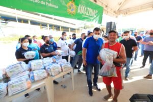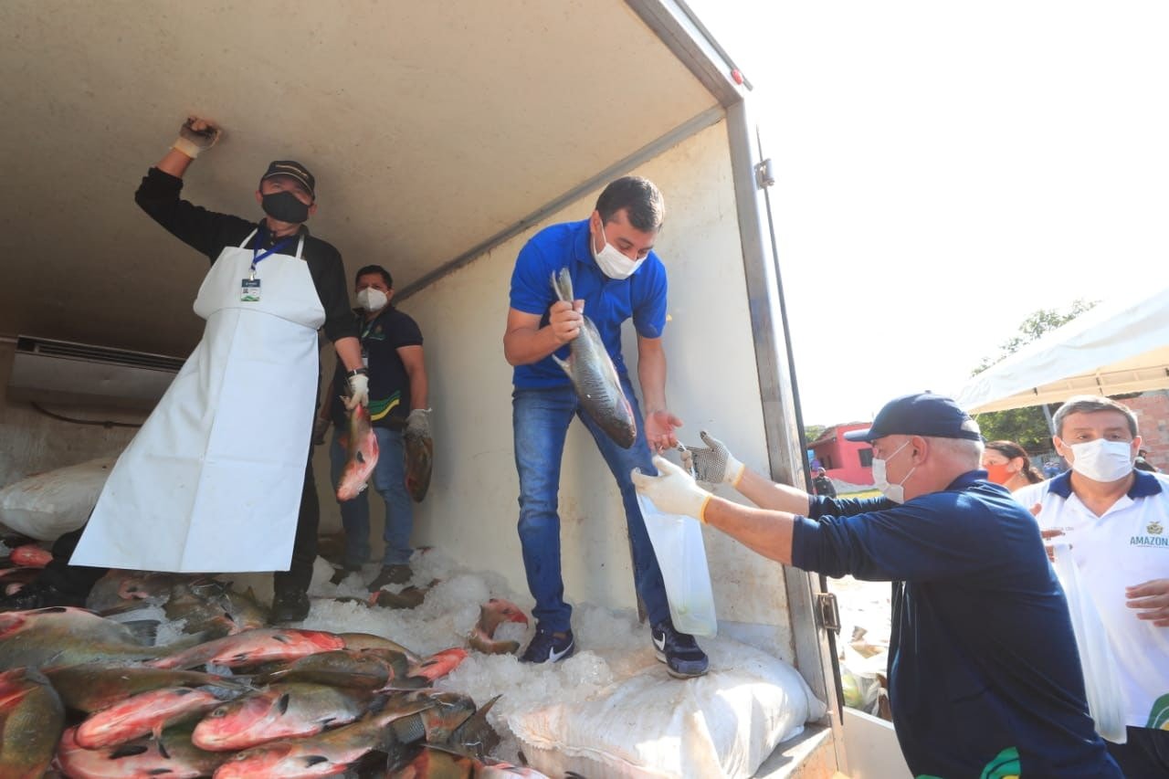O governador Wilson Lima entregou, neste sábado (21/09), peixes e kits de higiene para 1,5 mil famílias em vulnerabilidade social na Comunidade Nossa Vitória, bairro Nova Vitória, zona leste de Manaus. Segundo Wilson Lima, as entregas fazem parte do programa Peixe no Prato Solidário, um trabalho de assistência do Governo do Estado às famílias impactadas economicamente pela pandemia de Covid-19.