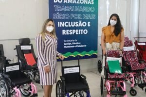 Uma nova entrega de cadeiras de rodas e de carteiras do Passe Legal foi realizada, nesta terça-feira (20/04), pelo Governo do Amazonas, por meio da Secretaria de Justiça, Direitos Humanos e Cidadania (Sejusc), na sede do Núcleo da Pessoa com Deficiência (PcD) da pasta, no bairro Adrianópolis, zona centro-sul de Manaus.