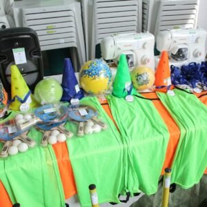 Para o laboratório de informática foram entregues computadores completos, notebook, estabilizadores, HD externo, pen drive, além de materiais esportivos como bolas de vôlei, coletes esportivos, raquetes para tênis, entre outros acessórios esportivos.