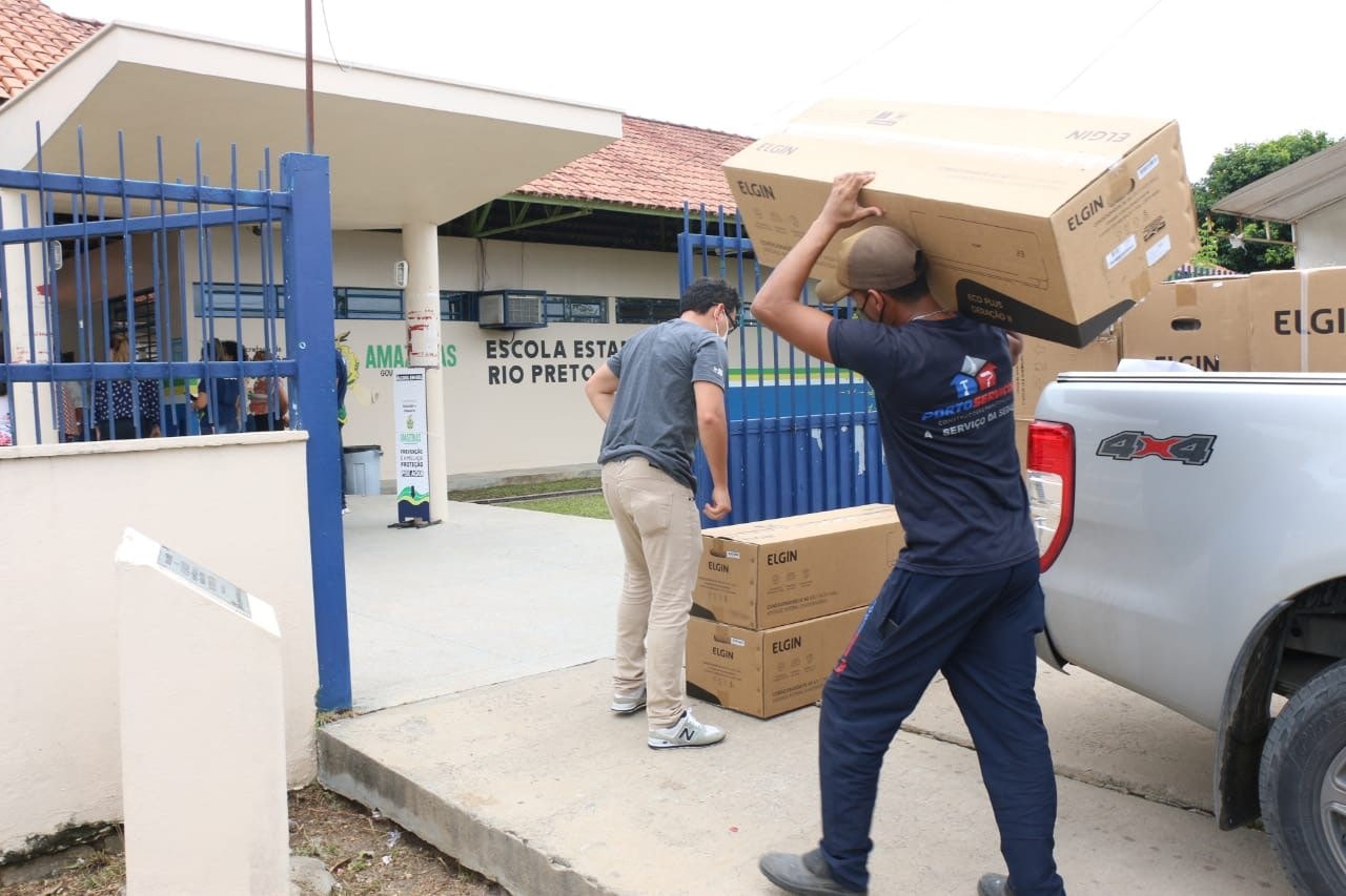A distribuição dos condicionadores de ar seguiu da seguinte forma: nove deles foram entregues à Escola Estadual Raimundo Paz, enquanto que 15 novas máquinas foram direcionadas à Escola Estadual Rio Preto da Eva. Além disso, ambas as unidades receberam, também, serviços de manutenção e limpeza nos ares-condicionados disponíveis nos prédios.