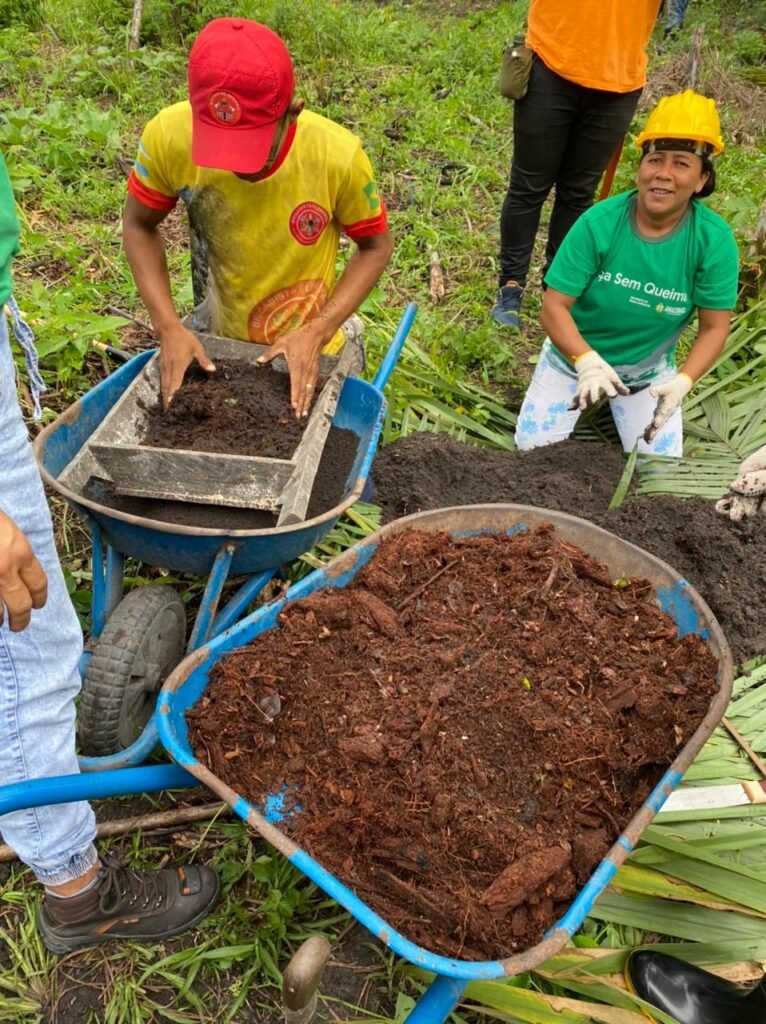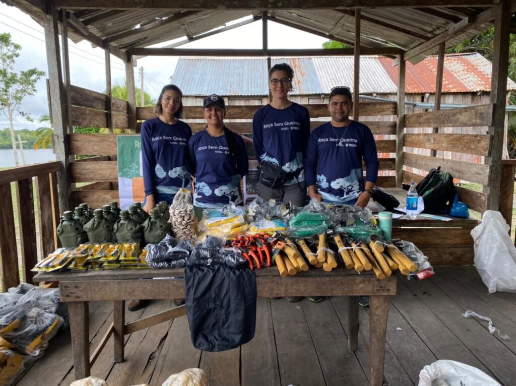 Além dos materiais, os comunitários também receberam oficinas sobre produção de mudas e preparação da área sem uso do fogo. Com os equipamentos adquiridos, foi possível realizar o preparo da área do roçado sem queima, além de criar sementeira e aceiro ao redor do local.