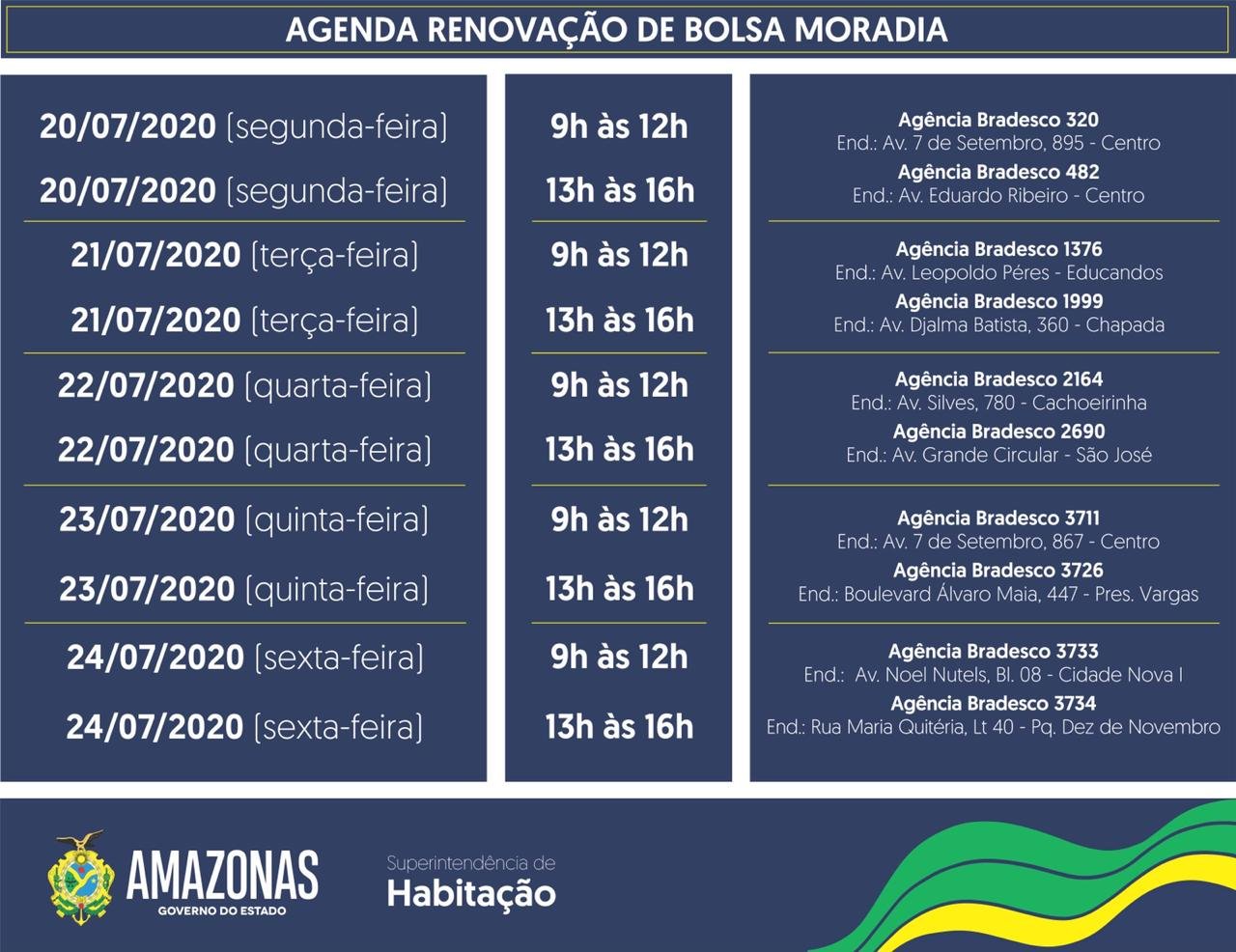 Segundo a diretora-presidente da Suhab, Viviane Dutra, os beneficiários precisam ficar atentos aos dias e horários de comparecimento ao local de renovação. “O atendimento dessas famílias foi planejado para evitar aglomerações. Para isso, vamos utilizar a lista de dez agências do Bradesco que já é aplicada nos dias de pagamento”, informou a diretora-presidente.