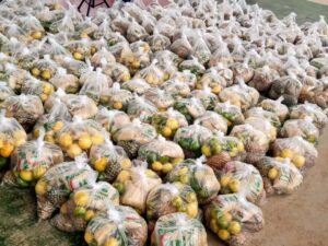 No centro de convenções da cidade foram entregues mais de 10 toneladas de alimentos, entre abacaxi e maracujá, adquiridos da agricultura familiar, por meio da compra com doação simultânea.