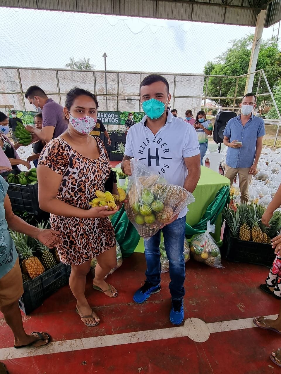 No centro de convenções da cidade foram entregues mais de 10 toneladas de alimentos, entre abacaxi e maracujá, adquiridos da agricultura familiar, por meio da compra com doação simultânea.