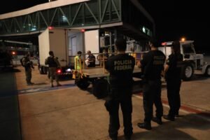 As novas doses foram desembarcadas no Aeroporto Internacional Eduardo Gomes por volta das 0h10, após serem trazidas à capital amazonense em uma aeronave modelo Airbus A321, da empresa Latam. Após o desembarque, as 7 mil doses foram escoltadas pela Polícia Federal até as câmaras frias instaladas na FVS-AM, onde foram contabilizadas e armazenadas.