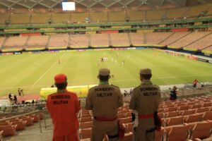 “Hoje temos em torno de 150 servidores da segurança pública, envolvendo Corpo de Bombeiros, Polícia Militar, Polícia Civil e os demais órgãos da Secretaria de Segurança Pública e hoje é um dia mais tranquilo, a abertura do torneio, e serve de experiência para o próximo jogo, que é no domingo, que vai ser um evento mais robusto”, explicou.