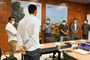 Cessão de área do Prosamin+ – Durante a reunião também foi assinado o termo de cessão de um terreno, que será criado pela intervenção do Prosamin+ no leito do igarapé do 40, para a construção de uma futura ETE no bairro da Raiz. A entrega é importante e constitui mais um avanço realizado pela gestão do governador Wilson Lima na área do saneamento básico.