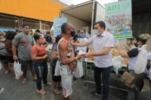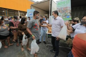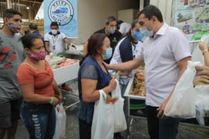 Mais de 1,1 mil famílias do bairro Mutirão, na zona norte de Manaus, foram beneficiadas neste sábado (23/10) pelo programa Peixe no Prato Solidário, criado pelo governador do Amazonas, Wilson Lima. Quatro toneladas de peixe e 1,2 toneladas de farinha, adquiridos pela Agência de Desenvolvimento Sustentável do Amazonas (ADS), foram distribuídas. O governador destacou que além de beneficiar pessoas em situação de vulnerabilidade, a ação beneficia piscicultores da região metropolitana de Manaus.